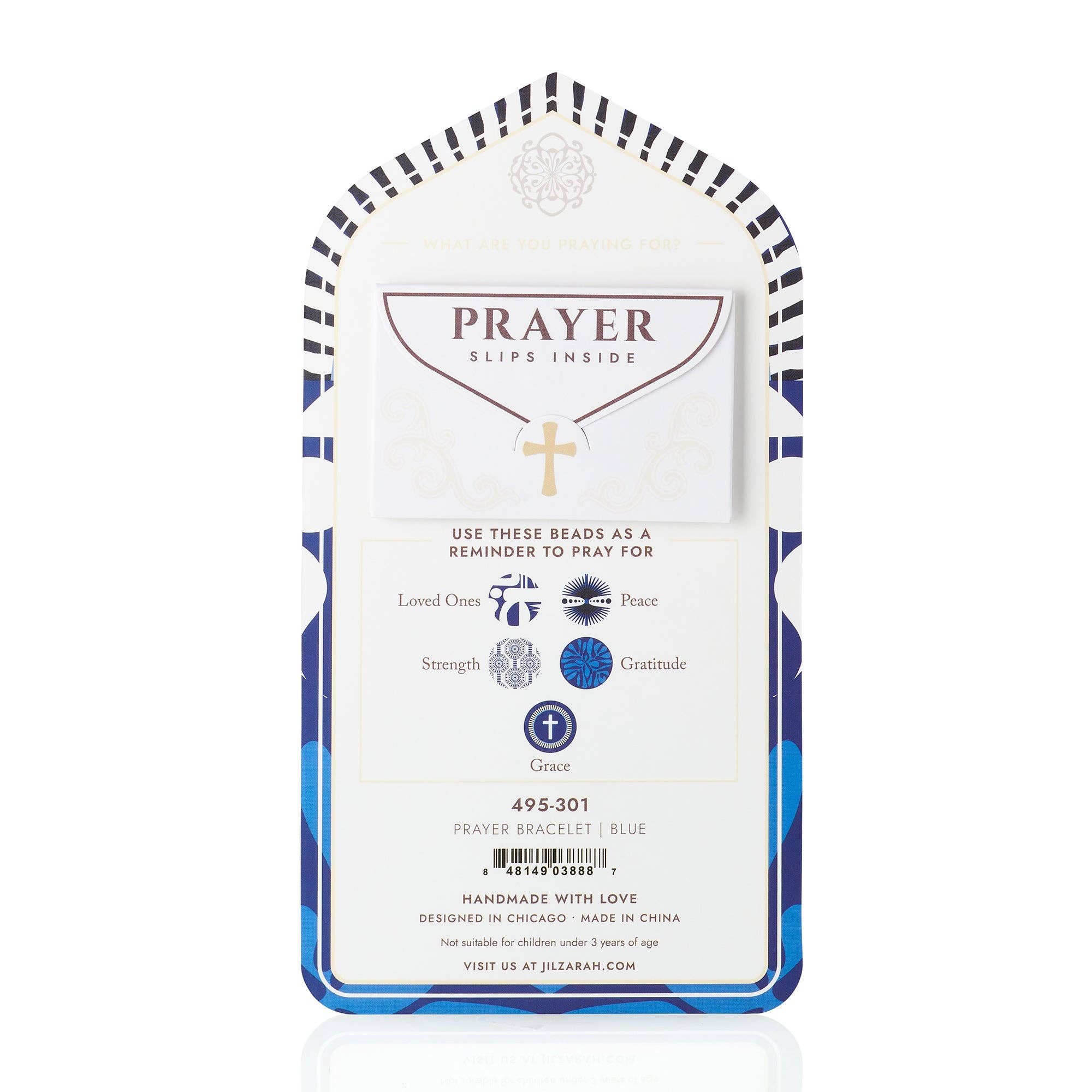 This bracelet is carefully hand-rendered in bold blues and bright whites Keep your faith close at heart and close at hand with our freshly updated Blue Prayer Bracelet. Additional Details: * Handcrafted 8mm polymer clay beads and a hinged, magnetic-closure message box on a durable 1.2mm elastic cord * Antique-finish silver spacers and prayer box that holds a written prayer * Lead-free, nickel-free, and cadmium-free, fastened to a display-ready header card * Elastic Stretch Style * One size fits most Sold in Multiples of: 2