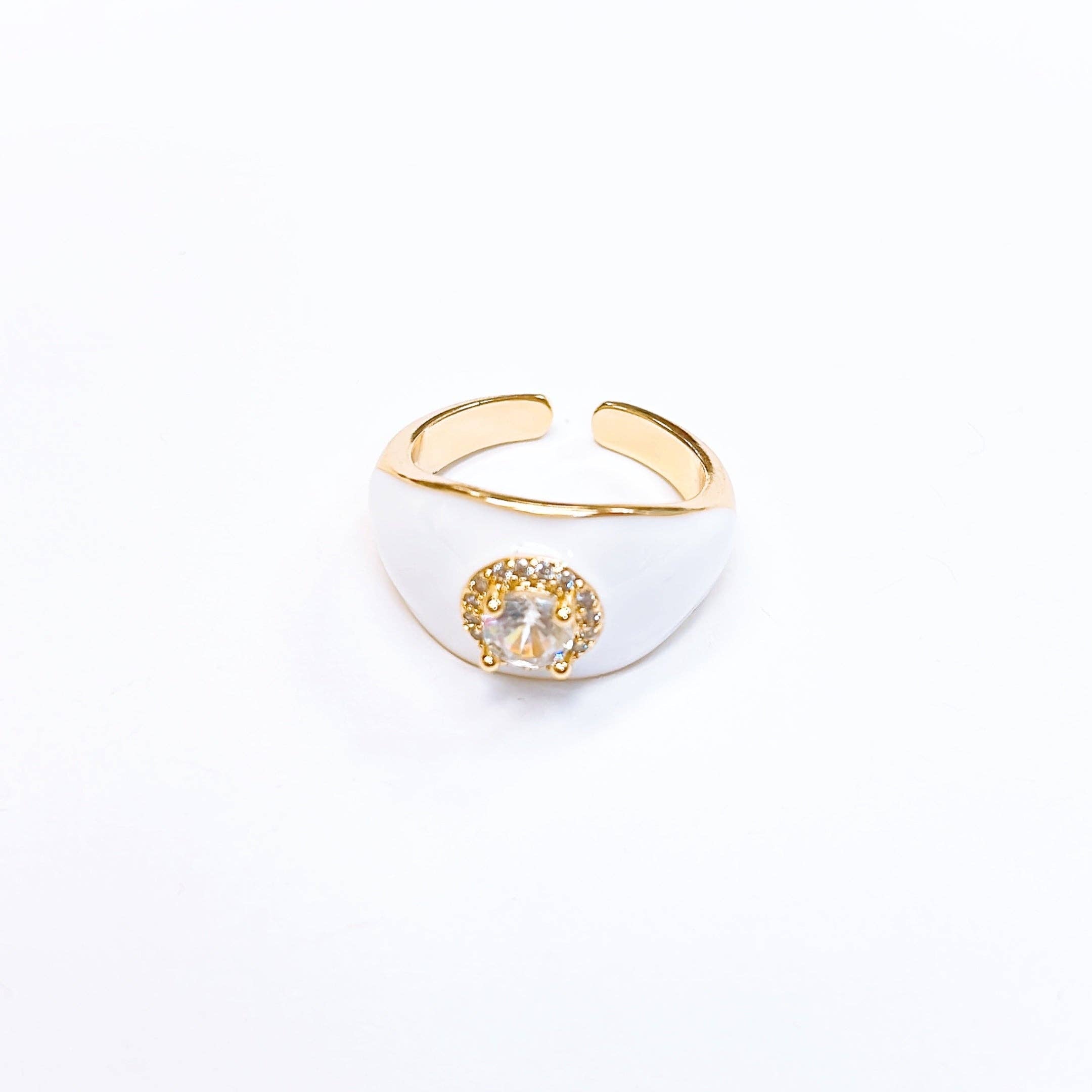 Immerse yourself in the elegance of the Irene White ring by Treasure Jewels Inc. This tastefully designed band/stacked ring is gold, embodying the rich, vibrant culture of Colombia and South America. Handcrafted by skilled Colombian artisans, many of whom are single mothers, each ring not only exudes beauty but also tells a story of resilience and tradition. This exquisite piece, influenced by the intricate patterns of the Wayuu weavers and traditional seed beading techniques, is sure to add a touch of sophistication to your jewelry collection.